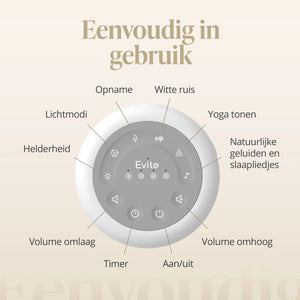 Die Evite White Noise Machine enthält 30 verschiedene Geräusche, darunter weißes Rauschen, Naturgeräusche, Herzschlag, Regen, Ozean Geräusche und beruhigende Melodien. Es gibt immer ein Geräusch, das zu dir oder deinem Kind passt.