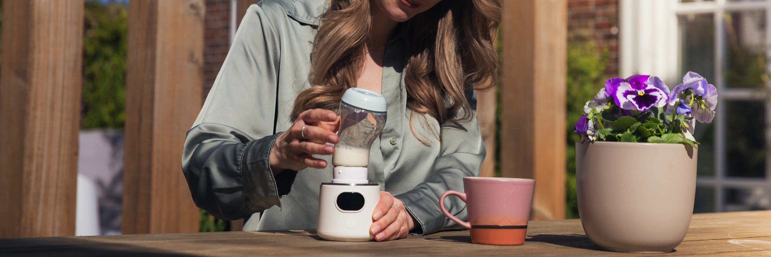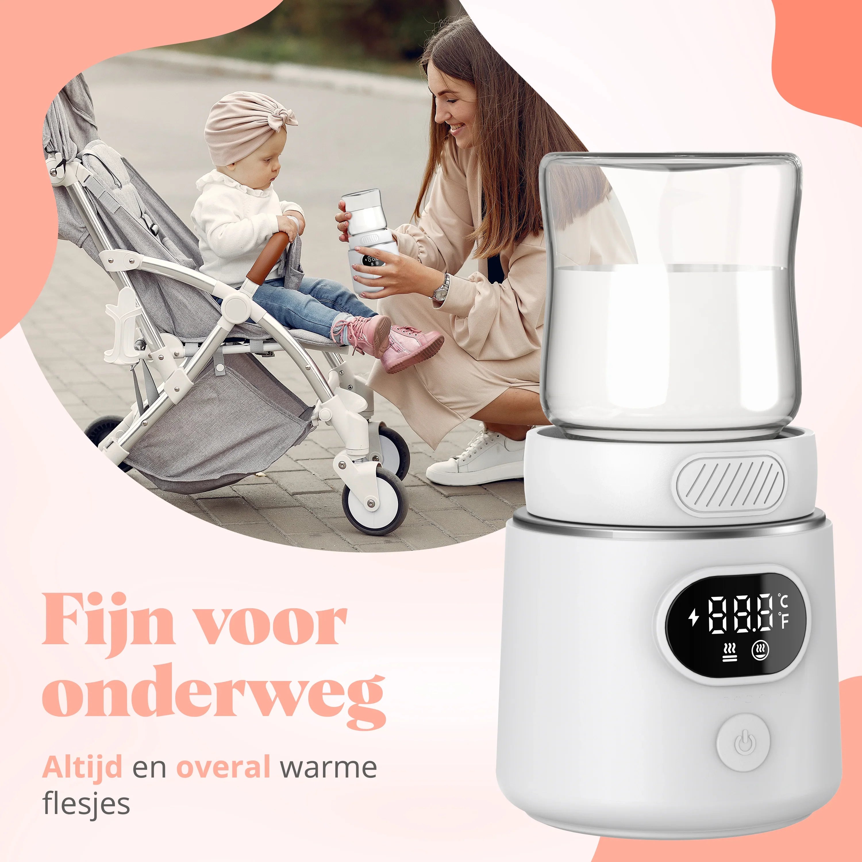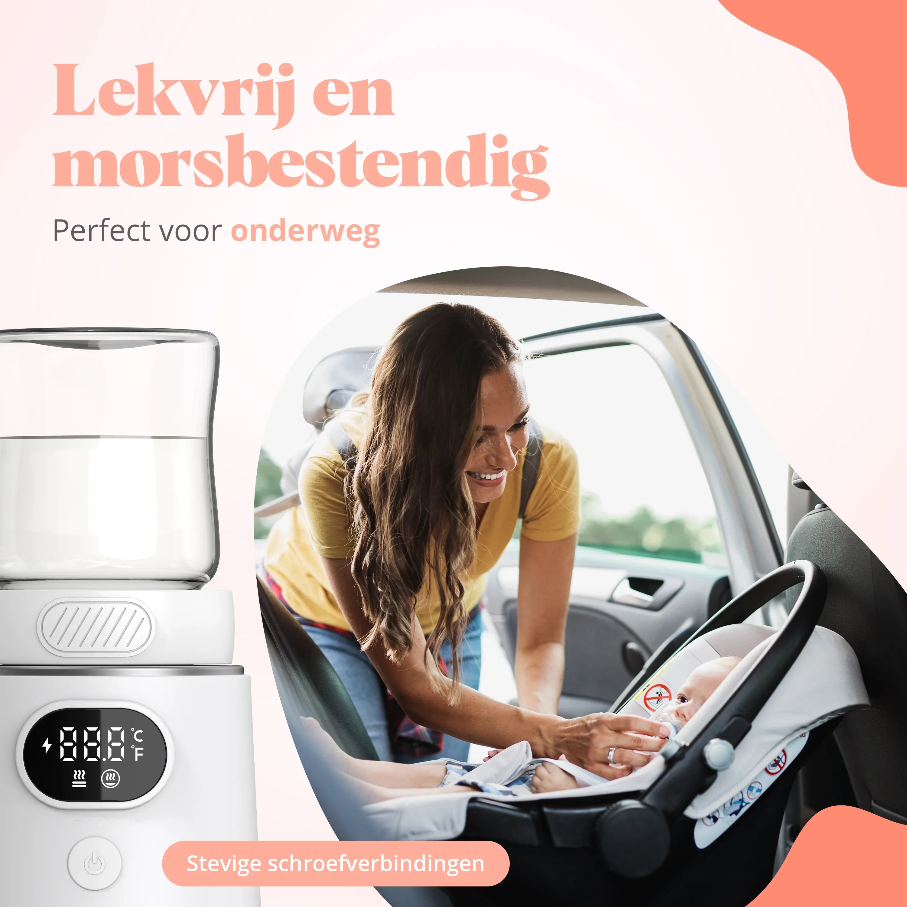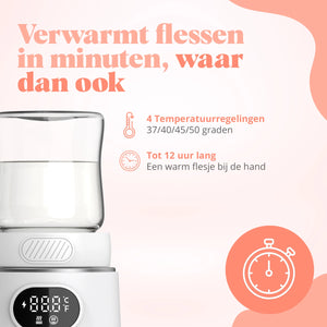 De stijlvolle flessenwarmer die moeiteloos met je meebeweegt.