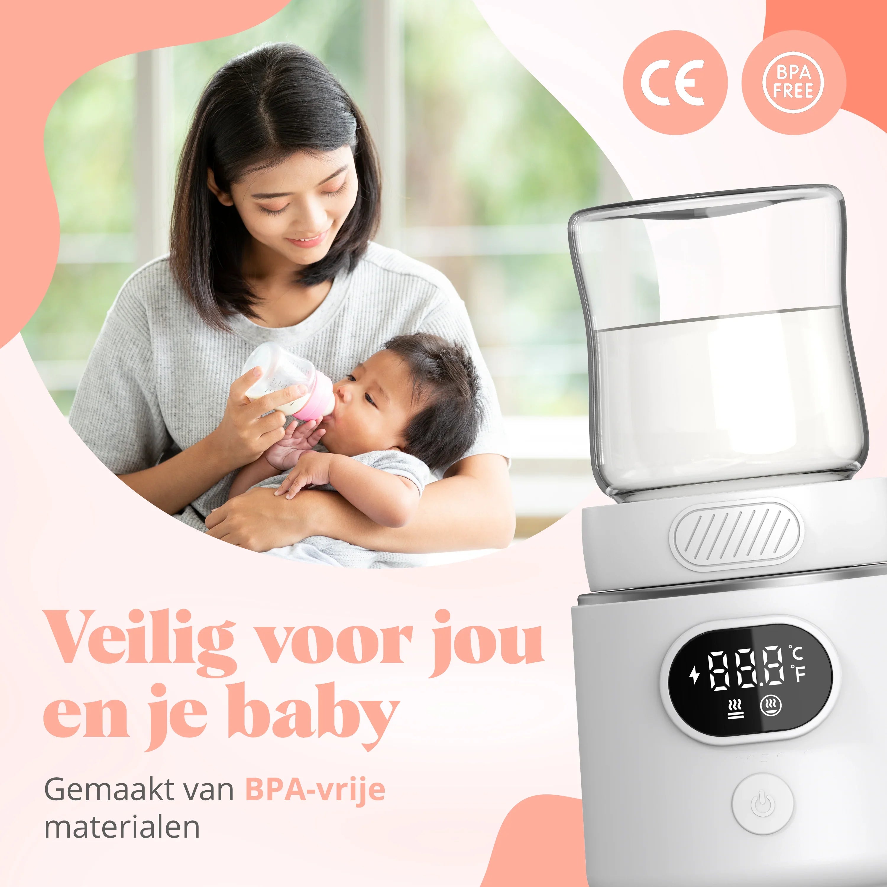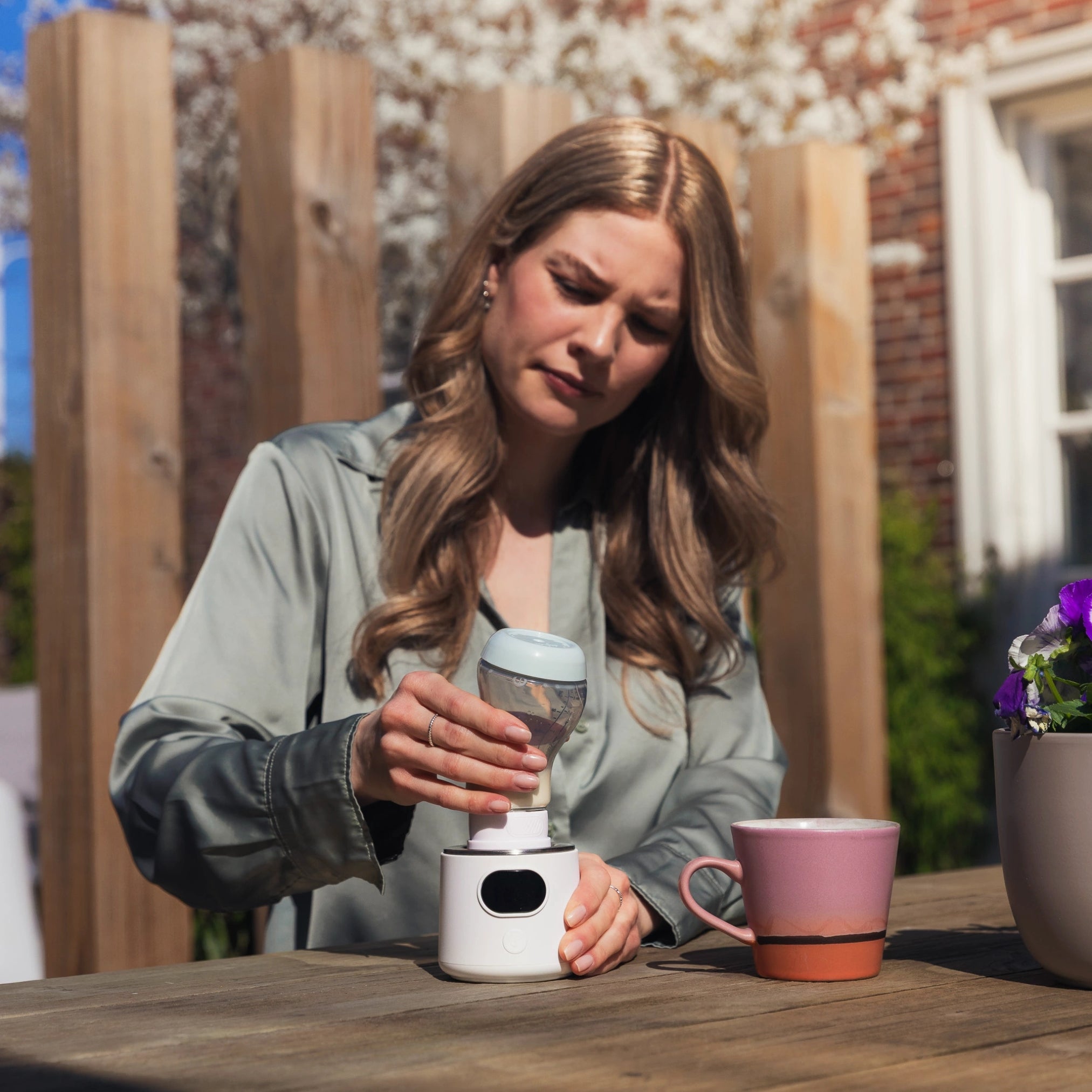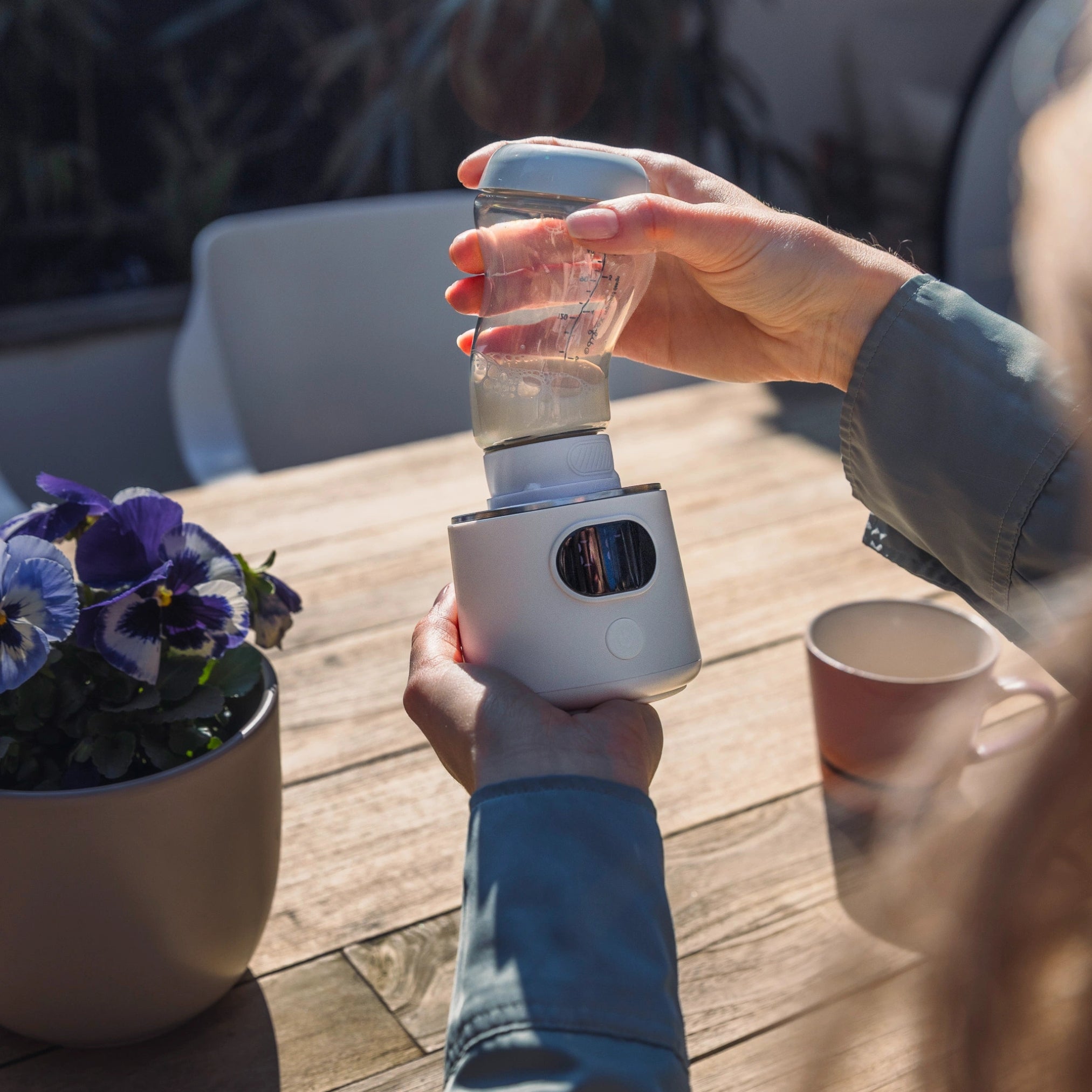 De stijlvolle flessenwarmer die moeiteloos met je meebeweegt.