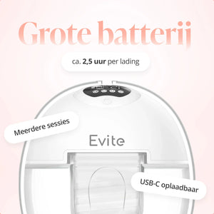 Die Evite Handsfree Milchpumpe ist für Mütter entwickelt, die Freiheit, Komfort und Diskretion kombinieren möchten. Kabellos, freihändig und flüsterleise, damit du abpumpen kannst, wo und wann du willst. Mit 4 Programmen, 12 Stufen und einer weichen Passform passt sie sich mühelos deinem Rhythmus an. Ideal für zu Hause, unterwegs oder bei der Arbeit.